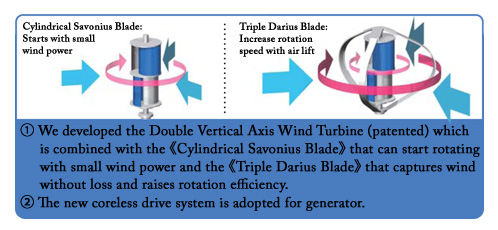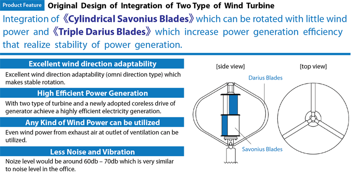 In order to solve these problems, two original devices were integrated into one, that is the [Vertical Turbine Wind Power Generator]